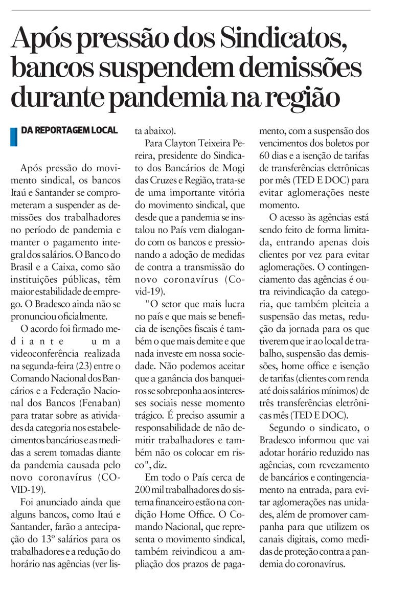 Sindicato dos Bancários de Mogi das Cruzes e Região © Direitos Reservados