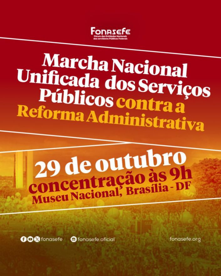 Diante do risco iminente de que o Congresso aprove a Reforma Administrativa, movimentos sociais de todo o país realizarão, na próxima quarta-feira, 29 de outubro, em Brasília, a Marcha Nacional dos Serviços Públicos contra a Reforma Administrativa. “Nosso convite é que todas e todos compareçam às ruas, para que a gente dê um recado claro que os servidores e servidoras não aceitam a retirada dos direitos, e que toda a população rechaça qualquer tipo de ataques às estatais e aos serviços públicos”, reforçou Juvandia Moreira.
