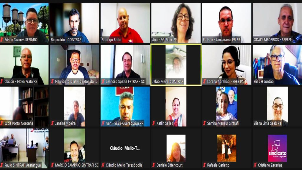 O Coletivo Nacional de Relações do Trabalho da Confederação Nacional dos Trabalhadores do Ramo Financeiro (Contra-CUT) se reuniu virtualmente, na manhã desta quinta-feira (9), para analisar a nova legislatura no Congresso Nacional, debater e encaminhar uma linha de atuação junto às casas legislativas do país afora e órgãos governamentais.