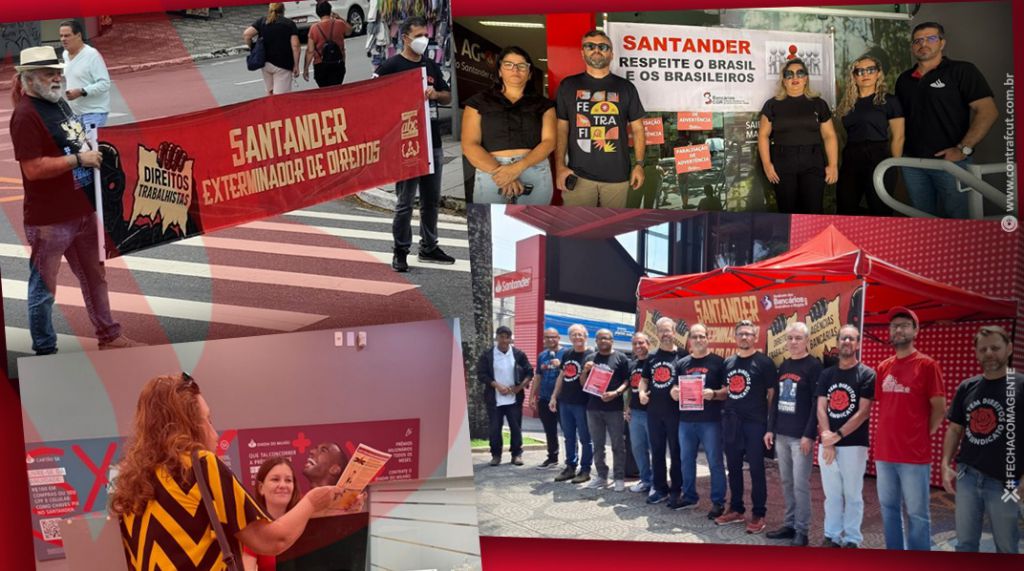“Neste Dia Nacional de Luta em defesa dos trabalhadores e clientes do banco Santander, a Contraf-CUT, junto às federações e sindicatos de todo o país, reafirma o compromisso na defesa do emprego bancário, contra o fechamento de agências e postos de atendimento, contra as práticas antissindicais e pelo respeito à dignidade de cada bancário e bancária no Brasil”, destacou Wanessa de Queiroz, coordenadora da Comissão de Organização dos Empregados (COE) Santander.